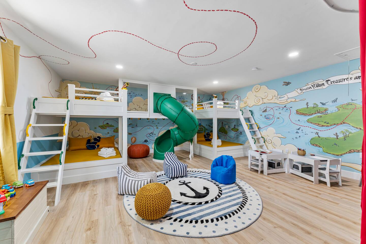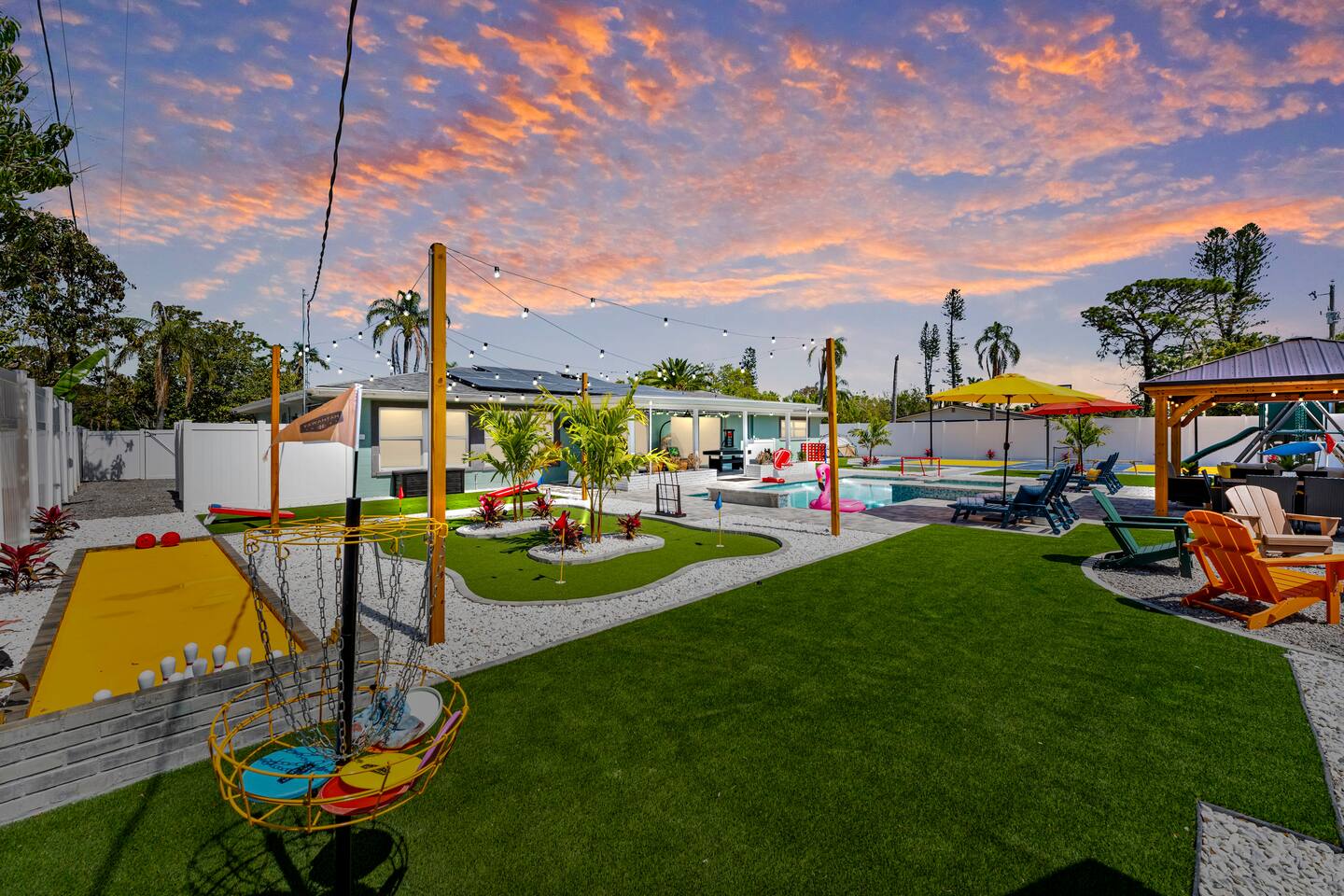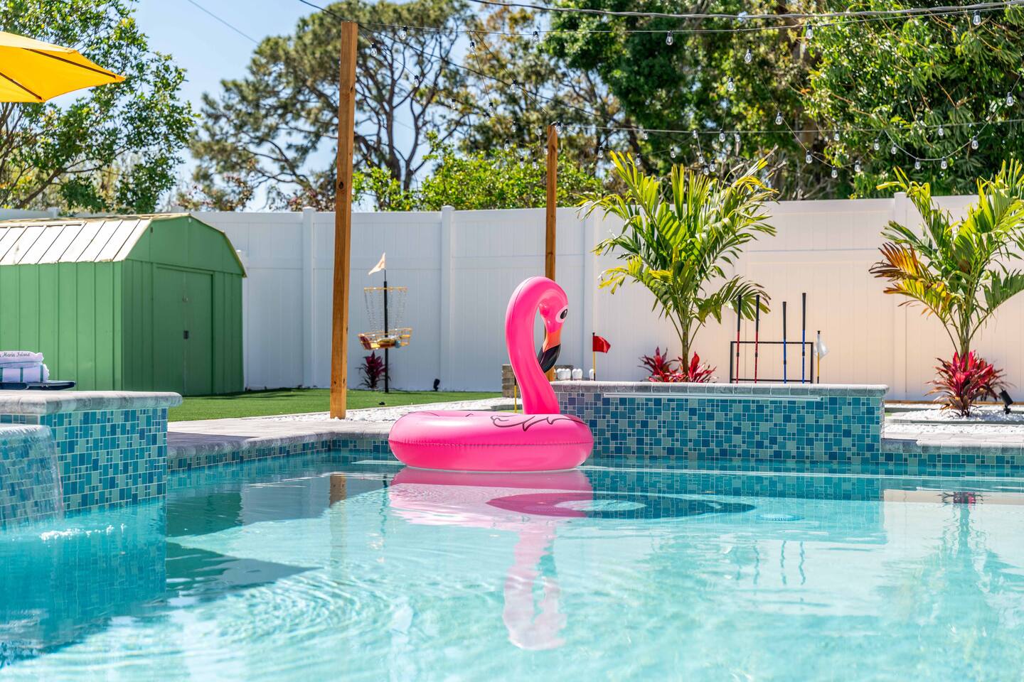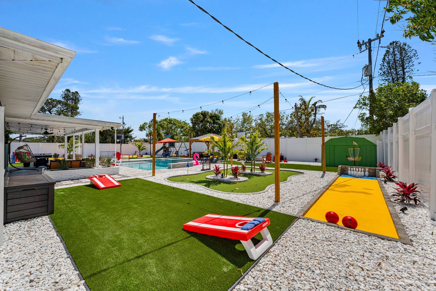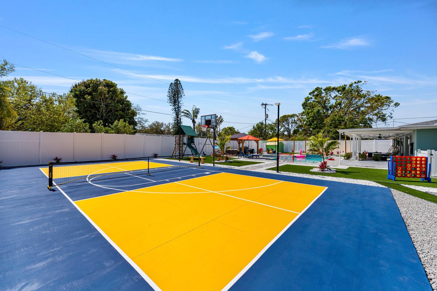 ☆☆ TREASURE ISLAND RETREAT – THE ULTIMATE FAMILY ADVENTURE! ☆☆ Why pay premium prices for a beachfront stay when you can have an entertainment-packed private resort? Welcome to Treasure Island Retreat, a one-of-a-kind 5-bedroom, 3-bath vacation paradise in Bradenton, FL, just minutes from the breathtaking shores of Anna Maria Island & Siesta Key Beach! But here’s the best part—you don’t even have to leave to have an unforgettable vacation. This home is so packed with activities, amenities, and entertainment that your family and friends will be completely immersed in fun from sunrise to sunset. Whether you're battling it out on the pickleball court, diving into the heated pool, relaxing in the spa, searching for hidden treasures, or enjoying an epic game night in the arcade, every moment here is designed for thrill, relaxation, and making lifelong memories. And for our pet-loving guests, we’ve created a special pet-friendly space on the property, ensuring that even your four-legged companions feel at home! Perfect for families, groups, and adventure-seekers of all ages, this resort-style getaway redefines vacationing—so much so that you may never want to leave! ♥︎♥︎ WHY YOU’LL LOVE ♥︎♥︎ ☀ 5 Spacious Bedrooms – with big and comfortable beds! ☀ 3 Newly designed Bathrooms – with spacious vanities and one bathroom with direct access to the backyard and pool area. ☀ Chef’s Dream Kitchen – Fully-stocked kitchen with stainless steel appliances ready for you to prepare your favorite meal. ☀ Epic Game Room – Arcade games, PS5, Roll & Score, ping pong, and pool table! ☀ Kids’ Dream Room – Featuring a custom-built bunk bed with 4 queen-sized beds with a slide, and a stage with a karaoke machine so your little stars can shine! ☀ Spark Creativity & Fun in the Kids' Room – Tables and chairs can be used as a chalkboard for drawing, a toddler desk for reading and learning, or a table for crafts and block-building. ☀ Entertainment for Everyone – Big 65” Smart TVs with soundbars in the kids' room, game room, and living room for movie nights and gaming marathons! ☀ Resort-style backyard – Heated pool, spa, gazebo, outdoor grill, and much more. ☀ Endless Outdoor Fun – Playground, climbing dome, pickleball court, basketball, cornhole, frisbee, giant connect 4, mini golf, outside bowling, and a fun sand boat for kids. ☀ Family-friendly — Crib + stroller + high chair + kids’ dinnerware ☀ Beach-ready — Plenty of beach gear, including chairs, towels, an umbrella, cooler & a beach cart. ☀ Pet-Friendly with a Dedicated Play Area for Your Furry Friends! ☆☆ WHERE YOU’LL SLEEP ☆☆ Designed with comfort and style, each bedroom offers cozy bedding and plenty of space to unwind. 🔹 Bedroom 1: Master Suite with a king bed, ensuite bathroom, blackout curtains, and a 50” TV. 🔹 Bedroom 2: King bed, blackout curtains + 50” TV. 🔹 Bedroom 3: King bed, blackout curtains + 50” TV. 🔹 Bedroom 4: Queen bed + 50” TV. 🔹 Bedroom 5: Custom-built bunk bed with 4 queen-sized beds + 65” TV. ☆☆ BATHROOMS ☆☆ Enjoy the convenience and luxury of three beautifully designed bathrooms, ensuring every guest has ample space and privacy: ✔ Master Suite Bathroom – A private retreat featuring a walk-in glass shower and an elegant vanity. ✔ Redesigned Guest Bathroom – Featuring a bathtub, perfect for moms to shower their little ones easily. ✔ Kids' Room & Pool-Access Bathroom – A fun, family-friendly bathroom featuring a beautiful vanity and direct access to the backyard and pool area, perfect for rinsing off after a swim! ☆☆ GOURMET KITCHEN & ELEGANT DINING ☆☆ Whether you're an experienced chef or just love gathering around good food, our beautifully designed kitchen makes every meal special. With sleek quartz countertops, stainless steel appliances, and an island that seats four, the space is both functional and stunning. ✔ Fully stocked kitchen – Everything you need, from pots and pans to utensils and sharp chef’s knives. ✔ Stainless steel appliances – Refrigerator, oven, microwave, and dishwasher for easy cleanup. ✔ Coffee station – Brew your perfect morning coffee with our coffee maker and provided essentials. ✔ Spacious island – Offers seating for 4, perfect for casual breakfasts or socializing while cooking. ☆☆ DINING ☆☆ Adjacent to the kitchen, the main dining table accommodates 10 guests, ensuring plenty of space for family meals and celebrations. Want to dine al fresco? Head to the gazebo, where another table with 6 chairs awaits, perfect for enjoying meals under the Florida sky! The open-concept living area provides plush seating with a comfortable sofa, making it ideal for family game nights or movie marathons on the 65” Smart TV. Connect to your favorite streaming service and enjoy a relaxing night in! ☆☆ BACKYARD PARADISE – YOUR PRIVATE RESORT AWAITS! ☆☆ Step outside and immerse yourself in adventure! Whether you're soaking up the sun, competing in games, or relaxing poolside, there’s something for everyone. ✔ Heated Pool & Spa – Swim under the Florida sun or enjoy an evening soak. ✔ Pickleball & Basketball– Endless sports action! ✔ Mini Golf, Bowling & Cornhole – Play under beautiful string lights. ✔ Playground & Sand Boat – Perfect for little explorers. ✔ Outdoor Grill & Dining Area – Fire up the BBQ and enjoy a meal under the gazebo with a 3-burner Webber grill. And don’t forget… Hidden Treasures are waiting to be found! ⇒ OPTIONAL POOL HEAT & SPA ⇐ We offer the option to heat the pool and spa for $30/day. This is completely optional, but please note that the water can be quite cool between September and May. If you’d like to add heat, let us know as soon as you book, as the system can take up to 24 hours to fully warm up. Please note: Pool and spa heat must be added for the entire stay—we’re unable to activate i