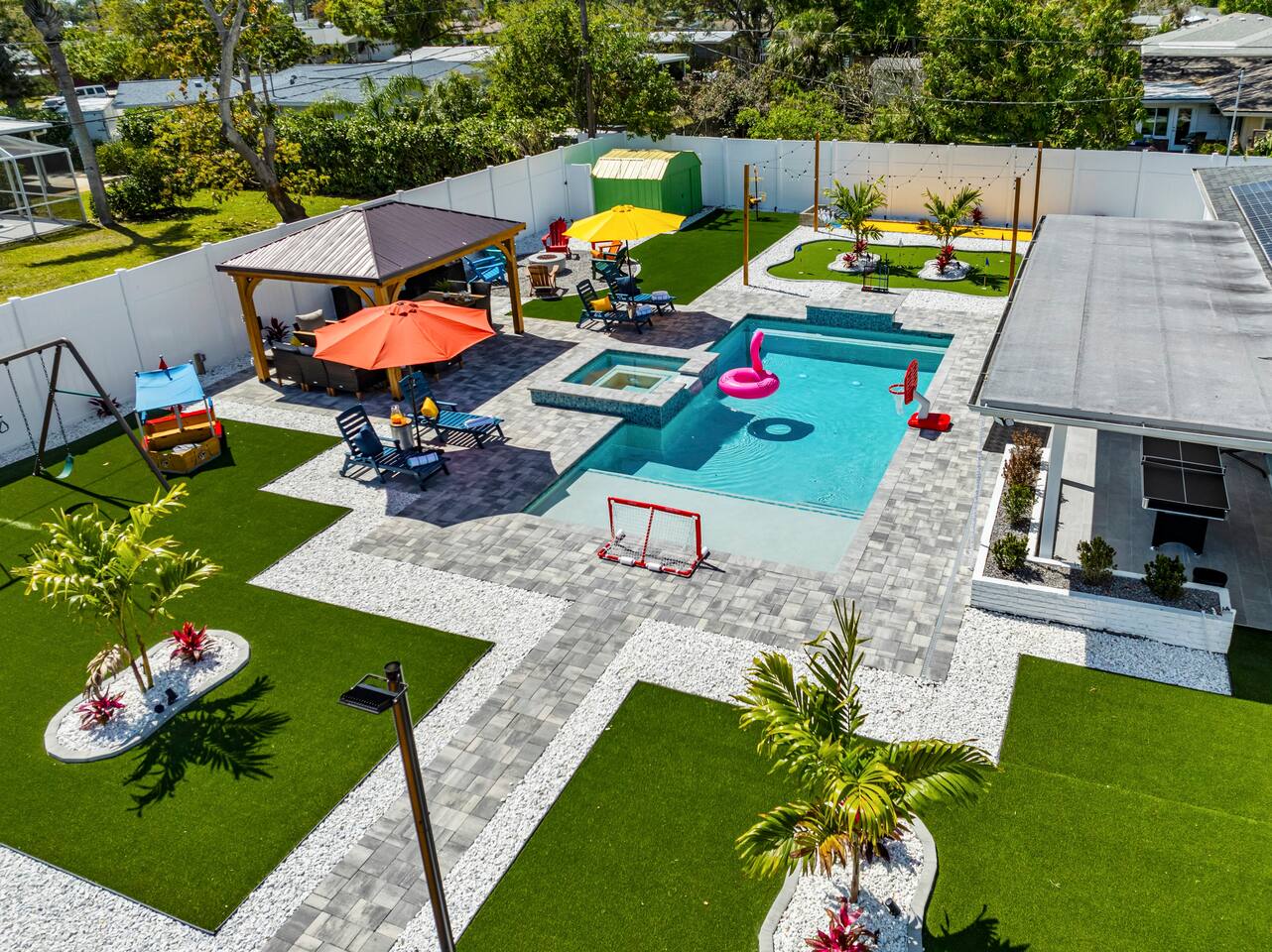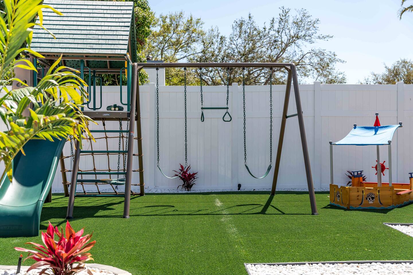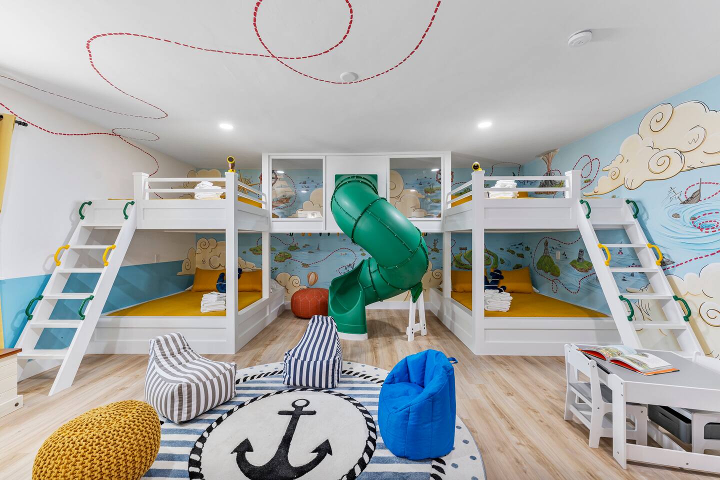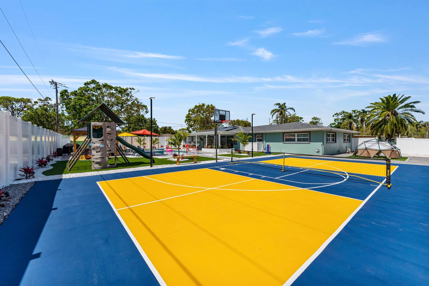 ☆☆ TREASURE ISLAND RETREAT – THE ULTIMATE FAMILY ADVENTURE! ☆☆ Why pay premium prices for a beachfront stay when you can have an entertainment-packed private resort? Welcome to Treasure Island Retreat, a one-of-a-kind 5-bedroom, 3-bath vacation paradise in Bradenton, FL, just minutes from the breathtaking shores of Anna Maria Island & Siesta Key Beach! But here’s the best part—you don’t even have to leave to have an unforgettable vacation. This home is so packed with activities, amenities, and entertainment that your family and friends will be completely immersed in fun from sunrise to sunset. Whether you're battling it out on the pickleball court, diving into the heated pool, relaxing in the spa, searching for hidden treasures, or enjoying an epic game night in the arcade, every moment here is designed for thrill, relaxation, and making lifelong memories. And for our pet-loving guests, we’ve created a special pet-friendly space on the property, ensuring that even your four-legged companions feel at home! Perfect for families, groups, and adventure-seekers of all ages, this resort-style getaway redefines vacationing—so much so that you may never want to leave! ♥︎♥︎ WHY YOU’LL LOVE ♥︎♥︎ ☀ 5 Spacious Bedrooms – with big and comfortable beds! ☀ 3 Newly designed Bathrooms – with spacious vanities and one bathroom with direct access to the backyard and pool area. ☀ Chef’s Dream Kitchen – Fully-stocked kitchen with stainless steel appliances ready for you to prepare your favorite meal. ☀ Epic Game Room – Arcade games, PS5, Roll & Score, ping pong, and pool table! ☀ Kids’ Dream Room – Featuring a custom-built bunk bed with 4 queen-sized beds with a slide, and a stage with a karaoke machine so your little stars can shine! ☀ Spark Creativity & Fun in the Kids' Room – Tables and chairs can be used as a chalkboard for drawing, a toddler desk for reading and learning, or a table for crafts and block-building. ☀ Entertainment for Everyone – Big 65” Smart TVs with soundbars in the kids' room, game room, and living room for movie nights and gaming marathons! ☀ Resort-style backyard – Heated pool, spa, gazebo, outdoor grill, and much more. ☀ Endless Outdoor Fun – Playground, climbing dome, pickleball court, basketball, cornhole, frisbee, giant connect 4, mini golf, outside bowling, and a fun sand boat for kids. ☀ Family-friendly — Crib + stroller + high chair + kids’ dinnerware ☀ Beach-ready — Plenty of beach gear, including chairs, towels, an umbrella, cooler & a beach cart. ☀ Pet-Friendly with a Dedicated Play Area for Your Furry Friends! ☆☆ WHERE YOU’LL SLEEP ☆☆ Designed with comfort and style, each bedroom offers cozy bedding and plenty of space to unwind. 🔹 Bedroom 1: Master Suite with a king bed, ensuite bathroom, blackout curtains, and a 50” TV. 🔹 Bedroom 2: King bed, blackout curtains + 50” TV. 🔹 Bedroom 3: King bed, blackout curtains + 50” TV. 🔹 Bedroom 4: Queen bed + 50” TV. 🔹 Bedroom 5: Custom-built bunk bed with 4 queen-sized beds + 65” TV. ☆☆ BATHROOMS ☆☆ Enjoy the convenience and luxury of three beautifully designed bathrooms, ensuring every guest has ample space and privacy: ✔ Master Suite Bathroom – A private retreat featuring a walk-in glass shower and an elegant vanity. ✔ Redesigned Guest Bathroom – Featuring a bathtub, perfect for moms to shower their little ones easily. ✔ Kids' Room & Pool-Access Bathroom – A fun, family-friendly bathroom featuring a beautiful vanity and direct access to the backyard and pool area, perfect for rinsing off after a swim! ☆☆ GOURMET KITCHEN & ELEGANT DINING ☆☆ Whether you're an experienced chef or just love gathering around good food, our beautifully designed kitchen makes every meal special. With sleek quartz countertops, stainless steel appliances, and an island that seats four, the space is both functional and stunning. ✔ Fully stocked kitchen – Everything you need, from pots and pans to utensils and sharp chef’s knives. ✔ Stainless steel appliances – Refrigerator, oven, microwave, and dishwasher for easy cleanup. ✔ Coffee station – Brew your perfect morning coffee with our coffee maker and provided essentials. ✔ Spacious island – Offers seating for 4, perfect for casual breakfasts or socializing while cooking. ☆☆ DINING ☆☆ Adjacent to the kitchen, the main dining table accommodates 10 guests, ensuring plenty of space for family meals and celebrations. Want to dine al fresco? Head to the gazebo, where another table with 6 chairs awaits, perfect for enjoying meals under the Florida sky! The open-concept living area provides plush seating with a comfortable sofa, making it ideal for family game nights or movie marathons on the 65” Smart TV. Connect to your favorite streaming service and enjoy a relaxing night in! ☆☆ BACKYARD PARADISE – YOUR PRIVATE RESORT AWAITS! ☆☆ Step outside and immerse yourself in adventure! Whether you're soaking up the sun, competing in games, or relaxing poolside, there’s something for everyone. ✔ Heated Pool & Spa – Swim under the Florida sun or enjoy an evening soak. ✔ Pickleball & Basketball– Endless sports action! ✔ Mini Golf, Bowling & Cornhole – Play under beautiful string lights. ✔ Playground & Sand Boat – Perfect for little explorers. ✔ Outdoor Grill & Dining Area – Fire up the BBQ and enjoy a meal under the gazebo with a 3-burner Webber grill. And don’t forget… Hidden Treasures are waiting to be found! ⇒ OPTIONAL POOL HEAT & SPA ⇐ We offer the option to heat the pool and spa for $30/day. This is completely optional, but please note that the water can be quite cool between September and May. If you’d like to add heat, let us know as soon as you book, as the system can take up to 24 hours to fully warm up. Please note: Pool and spa heat must be added for the entire stay—we’re unable to activate i
