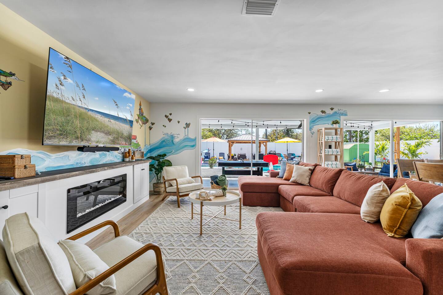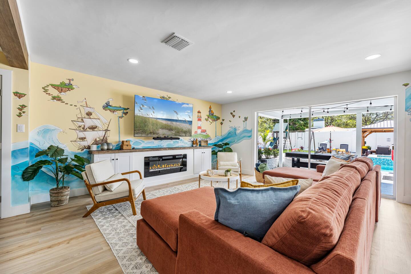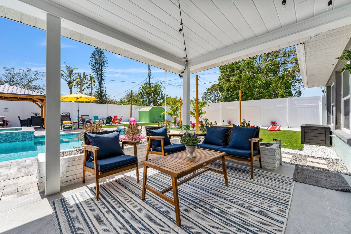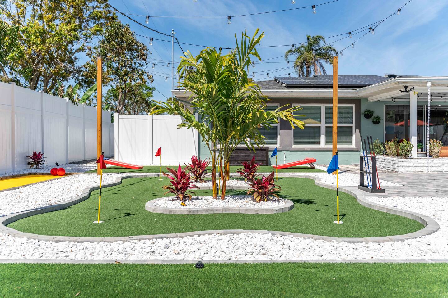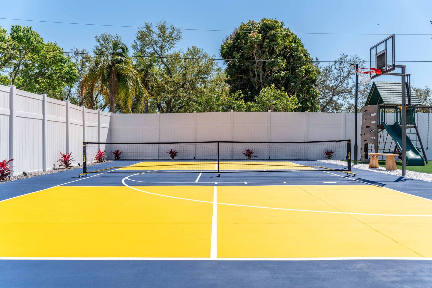 ☆☆ TREASURE ISLAND RETREAT – THE ULTIMATE FAMILY ADVENTURE! ☆☆ Why pay premium prices for a beachfront stay when you can have an entertainment-packed private resort? Welcome to Treasure Island Retreat, a one-of-a-kind 5-bedroom, 3-bath vacation paradise in Bradenton, FL, just minutes from the breathtaking shores of Anna Maria Island & Siesta Key Beach! But here’s the best part—you don’t even have to leave to have an unforgettable vacation. This home is so packed with activities, amenities, and entertainment that your family and friends will be completely immersed in fun from sunrise to sunset. Whether you're battling it out on the pickleball court, diving into the heated pool, relaxing in the spa, searching for hidden treasures, or enjoying an epic game night in the arcade, every moment here is designed for thrill, relaxation, and making lifelong memories. And for our pet-loving guests, we’ve created a special pet-friendly space on the property, ensuring that even your four-legged companions feel at home! Perfect for families, groups, and adventure-seekers of all ages, this resort-style getaway redefines vacationing—so much so that you may never want to leave! ♥︎♥︎ WHY YOU’LL LOVE ♥︎♥︎ ☀ 5 Spacious Bedrooms – with big and comfortable beds! ☀ 3 Newly designed Bathrooms – with spacious vanities and one bathroom with direct access to the backyard and pool area. ☀ Chef’s Dream Kitchen – Fully-stocked kitchen with stainless steel appliances ready for you to prepare your favorite meal. ☀ Epic Game Room – Arcade games, PS5, Roll & Score, ping pong, and pool table! ☀ Kids’ Dream Room – Featuring a custom-built bunk bed with 4 queen-sized beds with a slide, and a stage with a karaoke machine so your little stars can shine! ☀ Spark Creativity & Fun in the Kids' Room – Tables and chairs can be used as a chalkboard for drawing, a toddler desk for reading and learning, or a table for crafts and block-building. ☀ Entertainment for Everyone – Big 65” Smart TVs with soundbars in the kids' room, game room, and living room for movie nights and gaming marathons! ☀ Resort-style backyard – Heated pool, spa, gazebo, outdoor grill, and much more. ☀ Endless Outdoor Fun – Playground, climbing dome, pickleball court, basketball, cornhole, frisbee, giant connect 4, mini golf, outside bowling, and a fun sand boat for kids. ☀ Family-friendly — Crib + stroller + high chair + kids’ dinnerware ☀ Beach-ready — Plenty of beach gear, including chairs, towels, an umbrella, cooler & a beach cart. ☀ Pet-Friendly with a Dedicated Play Area for Your Furry Friends! ☆☆ WHERE YOU’LL SLEEP ☆☆ Designed with comfort and style, each bedroom offers cozy bedding and plenty of space to unwind. 🔹 Bedroom 1: Master Suite with a king bed, ensuite bathroom, blackout curtains, and a 50” TV. 🔹 Bedroom 2: King bed, blackout curtains + 50” TV. 🔹 Bedroom 3: King bed, blackout curtains + 50” TV. 🔹 Bedroom 4: Queen bed + 50” TV. 🔹 Bedroom 5: Custom-built bunk bed with 4 queen-sized beds + 65” TV. ☆☆ BATHROOMS ☆☆ Enjoy the convenience and luxury of three beautifully designed bathrooms, ensuring every guest has ample space and privacy: ✔ Master Suite Bathroom – A private retreat featuring a walk-in glass shower and an elegant vanity. ✔ Redesigned Guest Bathroom – Featuring a bathtub, perfect for moms to shower their little ones easily. ✔ Kids' Room & Pool-Access Bathroom – A fun, family-friendly bathroom featuring a beautiful vanity and direct access to the backyard and pool area, perfect for rinsing off after a swim! ☆☆ GOURMET KITCHEN & ELEGANT DINING ☆☆ Whether you're an experienced chef or just love gathering around good food, our beautifully designed kitchen makes every meal special. With sleek quartz countertops, stainless steel appliances, and an island that seats four, the space is both functional and stunning. ✔ Fully stocked kitchen – Everything you need, from pots and pans to utensils and sharp chef’s knives. ✔ Stainless steel appliances – Refrigerator, oven, microwave, and dishwasher for easy cleanup. ✔ Coffee station – Brew your perfect morning coffee with our coffee maker and provided essentials. ✔ Spacious island – Offers seating for 4, perfect for casual breakfasts or socializing while cooking. ☆☆ DINING ☆☆ Adjacent to the kitchen, the main dining table accommodates 10 guests, ensuring plenty of space for family meals and celebrations. Want to dine al fresco? Head to the gazebo, where another table with 6 chairs awaits, perfect for enjoying meals under the Florida sky! The open-concept living area provides plush seating with a comfortable sofa, making it ideal for family game nights or movie marathons on the 65” Smart TV. Connect to your favorite streaming service and enjoy a relaxing night in! ☆☆ BACKYARD PARADISE – YOUR PRIVATE RESORT AWAITS! ☆☆ Step outside and immerse yourself in adventure! Whether you're soaking up the sun, competing in games, or relaxing poolside, there’s something for everyone. ✔ Heated Pool & Spa – Swim under the Florida sun or enjoy an evening soak. ✔ Pickleball & Basketball– Endless sports action! ✔ Mini Golf, Bowling & Cornhole – Play under beautiful string lights. ✔ Playground & Sand Boat – Perfect for little explorers. ✔ Outdoor Grill & Dining Area – Fire up the BBQ and enjoy a meal under the gazebo with a 3-burner Webber grill. And don’t forget… Hidden Treasures are waiting to be found! ⇒ OPTIONAL POOL HEAT & SPA ⇐ We offer the option to heat the pool and spa for $30/day. This is completely optional, but please note that the water can be quite cool between September and May. If you’d like to add heat, let us know as soon as you book, as the system can take up to 24 hours to fully warm up. Please note: Pool and spa heat must be added for the entire stay—we’re unable to activate i