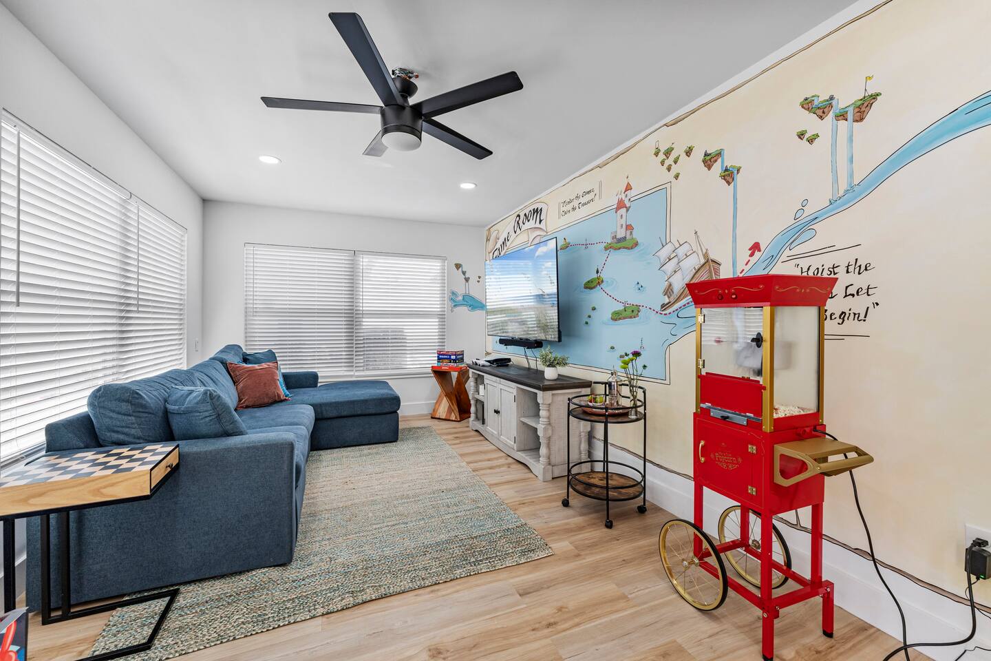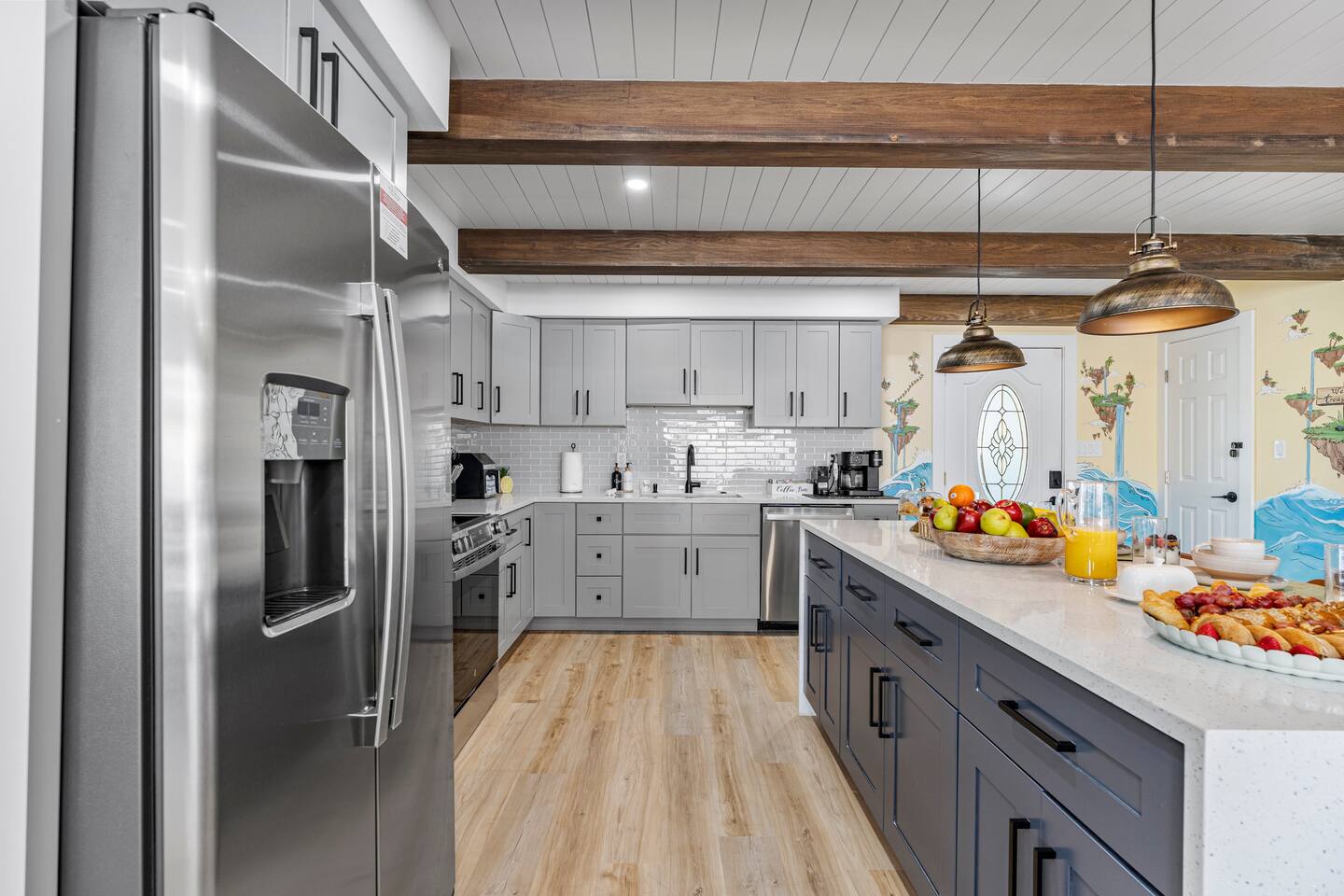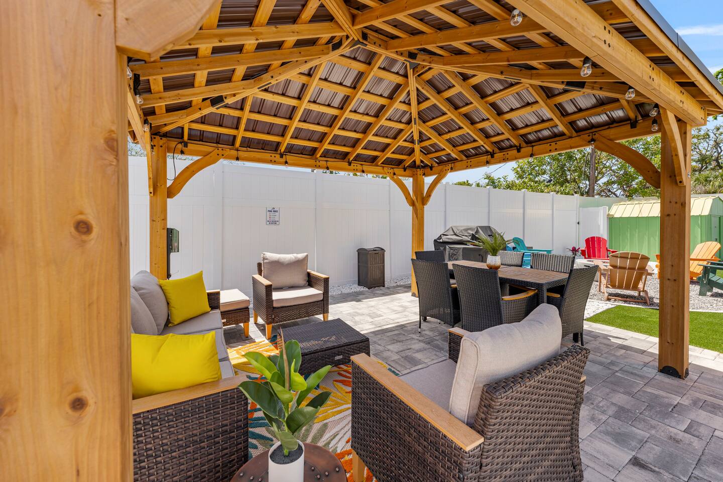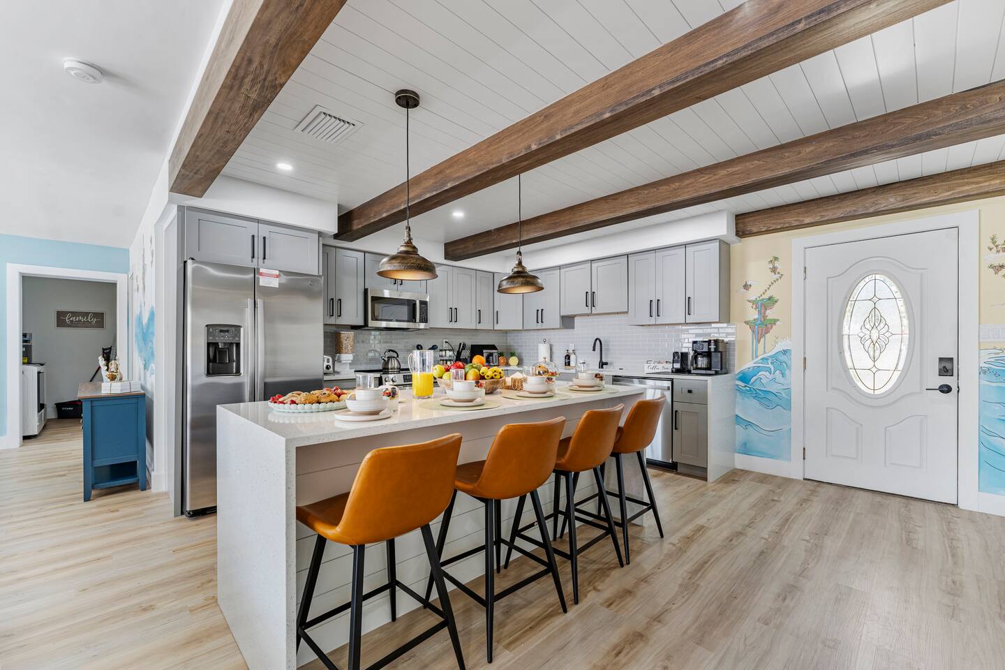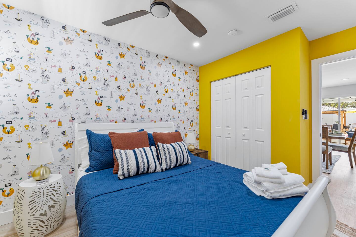 ☆☆ TREASURE ISLAND RETREAT – THE ULTIMATE FAMILY ADVENTURE! ☆☆ Why pay premium prices for a beachfront stay when you can have an entertainment-packed private resort? Welcome to Treasure Island Retreat, a one-of-a-kind 5-bedroom, 3-bath vacation paradise in Bradenton, FL, just minutes from the breathtaking shores of Anna Maria Island & Siesta Key Beach! But here’s the best part—you don’t even have to leave to have an unforgettable vacation. This home is so packed with activities, amenities, and entertainment that your family and friends will be completely immersed in fun from sunrise to sunset. Whether you're battling it out on the pickleball court, diving into the heated pool, relaxing in the spa, searching for hidden treasures, or enjoying an epic game night in the arcade, every moment here is designed for thrill, relaxation, and making lifelong memories. And for our pet-loving guests, we’ve created a special pet-friendly space on the property, ensuring that even your four-legged companions feel at home! Perfect for families, groups, and adventure-seekers of all ages, this resort-style getaway redefines vacationing—so much so that you may never want to leave! ♥︎♥︎ WHY YOU’LL LOVE ♥︎♥︎ ☀ 5 Spacious Bedrooms – with big and comfortable beds! ☀ 3 Newly designed Bathrooms – with spacious vanities and one bathroom with direct access to the backyard and pool area. ☀ Chef’s Dream Kitchen – Fully-stocked kitchen with stainless steel appliances ready for you to prepare your favorite meal. ☀ Epic Game Room – Arcade games, PS5, Roll & Score, ping pong, and pool table! ☀ Kids’ Dream Room – Featuring a custom-built bunk bed with 4 queen-sized beds with a slide, and a stage with a karaoke machine so your little stars can shine! ☀ Spark Creativity & Fun in the Kids' Room – Tables and chairs can be used as a chalkboard for drawing, a toddler desk for reading and learning, or a table for crafts and block-building. ☀ Entertainment for Everyone – Big 65” Smart TVs with soundbars in the kids' room, game room, and living room for movie nights and gaming marathons! ☀ Resort-style backyard – Heated pool, spa, gazebo, outdoor grill, and much more. ☀ Endless Outdoor Fun – Playground, climbing dome, pickleball court, basketball, cornhole, frisbee, giant connect 4, mini golf, outside bowling, and a fun sand boat for kids. ☀ Family-friendly — Crib + stroller + high chair + kids’ dinnerware ☀ Beach-ready — Plenty of beach gear, including chairs, towels, an umbrella, cooler & a beach cart. ☀ Pet-Friendly with a Dedicated Play Area for Your Furry Friends! ☆☆ WHERE YOU’LL SLEEP ☆☆ Designed with comfort and style, each bedroom offers cozy bedding and plenty of space to unwind. 🔹 Bedroom 1: Master Suite with a king bed, ensuite bathroom, blackout curtains, and a 50” TV. 🔹 Bedroom 2: King bed, blackout curtains + 50” TV. 🔹 Bedroom 3: King bed, blackout curtains + 50” TV. 🔹 Bedroom 4: Queen bed + 50” TV. 🔹 Bedroom 5: Custom-built bunk bed with 4 queen-sized beds + 65” TV. ☆☆ BATHROOMS ☆☆ Enjoy the convenience and luxury of three beautifully designed bathrooms, ensuring every guest has ample space and privacy: ✔ Master Suite Bathroom – A private retreat featuring a walk-in glass shower and an elegant vanity. ✔ Redesigned Guest Bathroom – Featuring a bathtub, perfect for moms to shower their little ones easily. ✔ Kids' Room & Pool-Access Bathroom – A fun, family-friendly bathroom featuring a beautiful vanity and direct access to the backyard and pool area, perfect for rinsing off after a swim! ☆☆ GOURMET KITCHEN & ELEGANT DINING ☆☆ Whether you're an experienced chef or just love gathering around good food, our beautifully designed kitchen makes every meal special. With sleek quartz countertops, stainless steel appliances, and an island that seats four, the space is both functional and stunning. ✔ Fully stocked kitchen – Everything you need, from pots and pans to utensils and sharp chef’s knives. ✔ Stainless steel appliances – Refrigerator, oven, microwave, and dishwasher for easy cleanup. ✔ Coffee station – Brew your perfect morning coffee with our coffee maker and provided essentials. ✔ Spacious island – Offers seating for 4, perfect for casual breakfasts or socializing while cooking. ☆☆ DINING ☆☆ Adjacent to the kitchen, the main dining table accommodates 10 guests, ensuring plenty of space for family meals and celebrations. Want to dine al fresco? Head to the gazebo, where another table with 6 chairs awaits, perfect for enjoying meals under the Florida sky! The open-concept living area provides plush seating with a comfortable sofa, making it ideal for family game nights or movie marathons on the 65” Smart TV. Connect to your favorite streaming service and enjoy a relaxing night in! ☆☆ BACKYARD PARADISE – YOUR PRIVATE RESORT AWAITS! ☆☆ Step outside and immerse yourself in adventure! Whether you're soaking up the sun, competing in games, or relaxing poolside, there’s something for everyone. ✔ Heated Pool & Spa – Swim under the Florida sun or enjoy an evening soak. ✔ Pickleball & Basketball– Endless sports action! ✔ Mini Golf, Bowling & Cornhole – Play under beautiful string lights. ✔ Playground & Sand Boat – Perfect for little explorers. ✔ Outdoor Grill & Dining Area – Fire up the BBQ and enjoy a meal under the gazebo with a 3-burner Webber grill. And don’t forget… Hidden Treasures are waiting to be found! ⇒ OPTIONAL POOL HEAT & SPA ⇐ We offer the option to heat the pool and spa for $30/day. This is completely optional, but please note that the water can be quite cool between September and May. If you’d like to add heat, let us know as soon as you book, as the system can take up to 24 hours to fully warm up. Please note: Pool and spa heat must be added for the entire stay—we’re unable to activate i