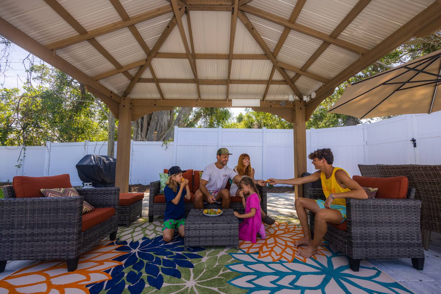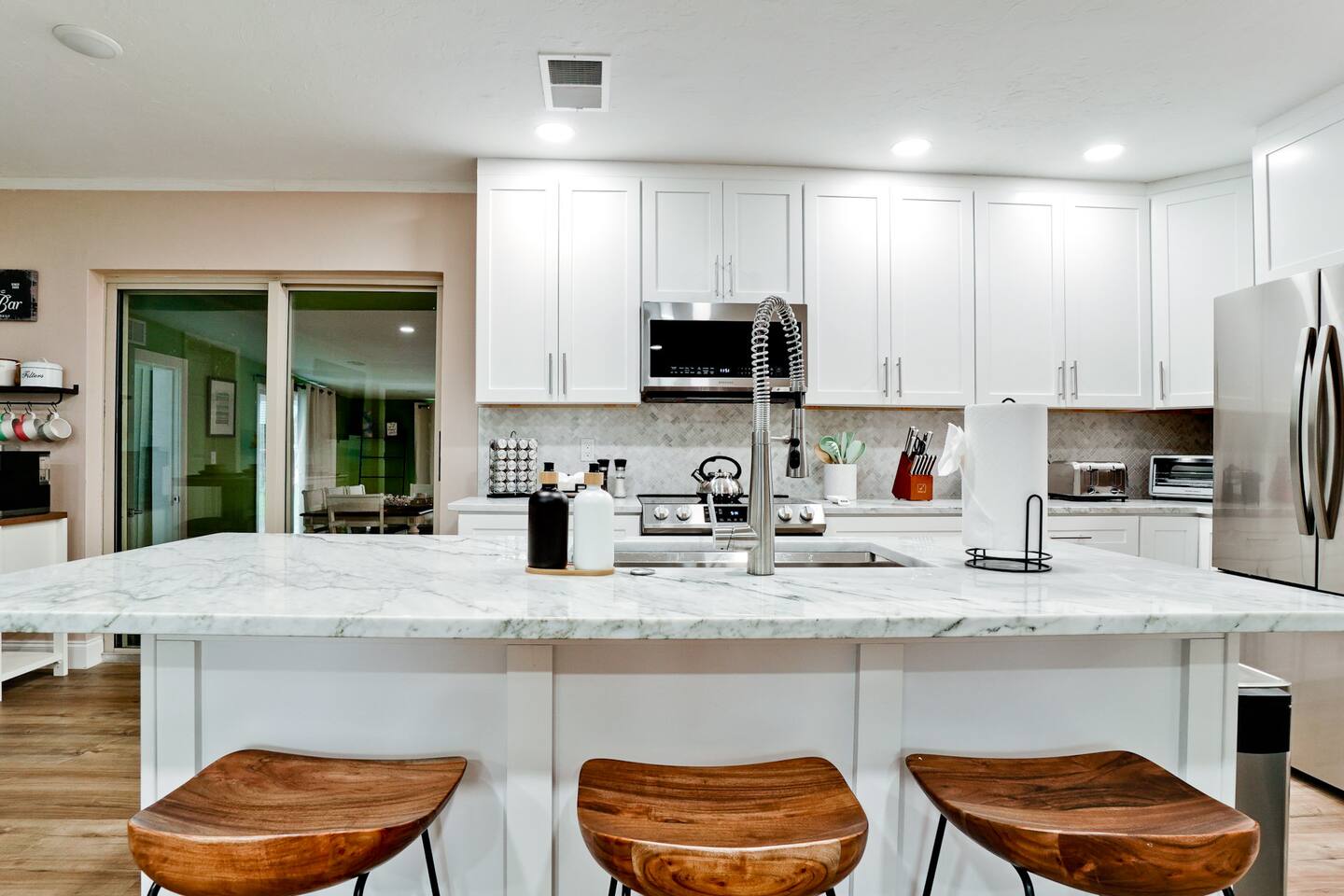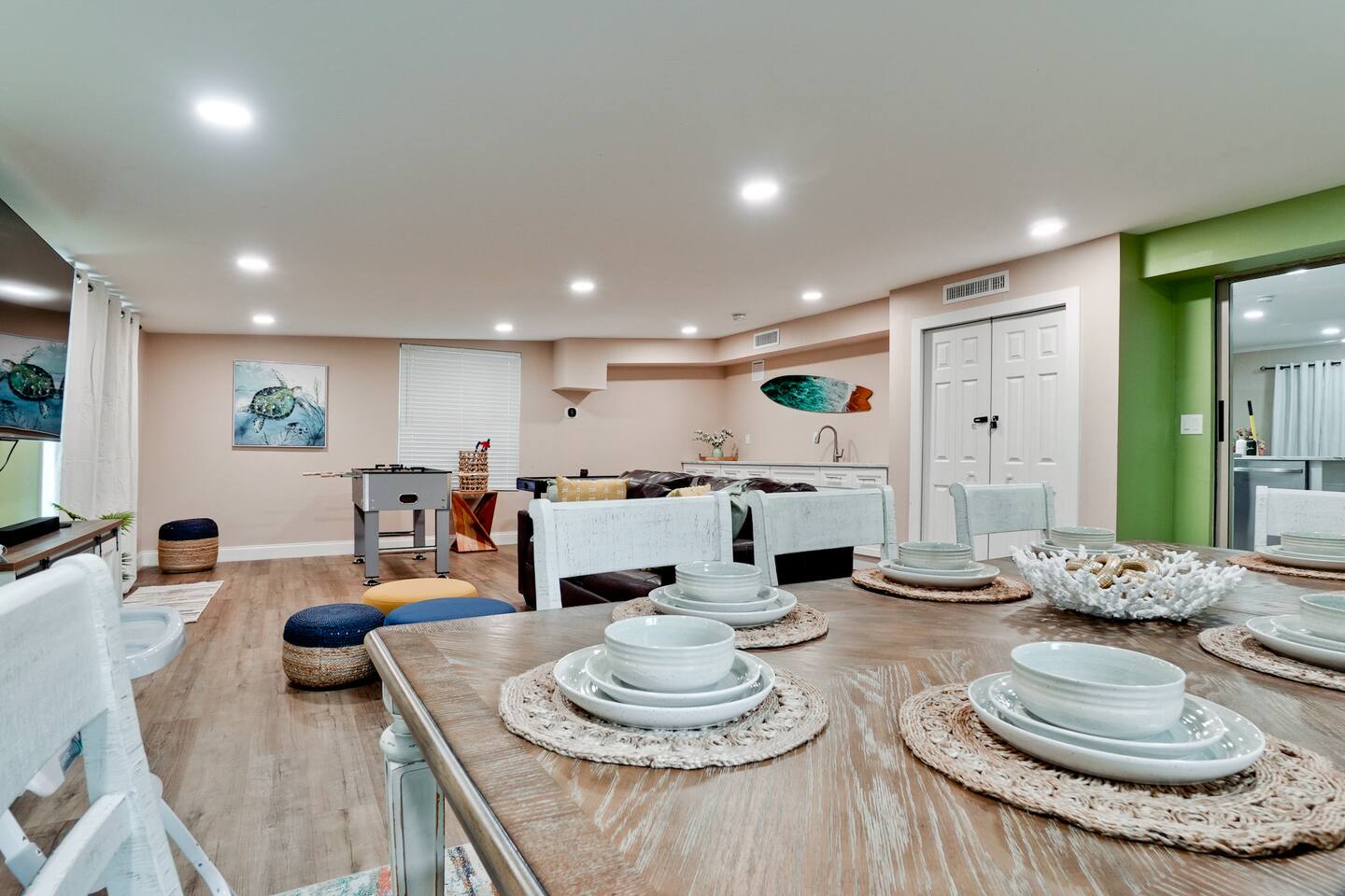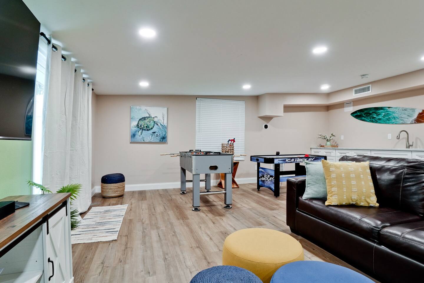 Luxurious 5-Bedroom Family Retreat with Heated Pool, Pickleball, and Mini-Golf | Near Siesta Key & Anna Maria Island Welcome to your Sarasota family getaway! This newly renovated 5-bedroom, 3-bath luxury home (2,400 sq ft) combines resort-style amenities, family-friendly comfort, and unbeatable proximity to downtown Sarasota, Siesta Key, Lido Key, and Anna Maria Island, some of Florida’s most iconic beaches. Whether you’re planning a beach escape, family reunion, or golf and pickleball retreat, this property offers everything you need for the ultimate Florida vacation. ➞ WHAT YOU’LL LOVE ABOUT THIS HOME • Sleeps up to 16 guests (12 adults + 4 kids) across 5 bedrooms and 3 bathrooms • Private heated pool, pickleball court, and mini-golf — your own backyard resort • Coastal-modern design with spacious interiors and stylish finishes • Fully stocked chef’s kitchen with stainless steel appliances and island seating • Game room with PlayStation 5, pool table, ping pong, fun for all ages • Outdoor oasis featuring gazebo, grill, outdoor shower, and comfortable lounge seating • Family-friendly amenities including Pack ’n Play, stroller, and highchair • Fast Wi-Fi + Smart TVs with Roku, Netflix, and Disney+ in every room • Washer & dryer for your convenience • Free parking for up to 5 (small) cars available on-site ➞ LOCATION • Sarasota–Bradenton International Airport – 3 miles (7 min) • Downtown Sarasota – 7 miles (15 min) • Siesta Key Beach – 17 miles (30 min) • Anna Maria Island – 14 miles (25 min) • Lido Key Beach – 8 miles (18 min) • The Ringling Museum of Art – 4 miles (8 min) • Garden of Ancient Statues – 4 miles (8 min) • IMG Academy – 13 miles (20 min) • Marietta Museum of Art & Whimsy – 6 miles (12 min) ➞ WHERE YOU’LL SLEEP Each bedroom is designed for comfort and relaxation, with Smart TVs, workspaces, and quality linens. • Bedroom 1: King bed · Ensuite bath · Smart TV · Work desk • Bedroom 2: Full-over-full bunk w/ twin trundle (perfect for kids) • Bedroom 3: King bed · Smart TV · Work desk • Bedroom 4: Queen bed · Ensuite bath · Smart TV · Work desk • Bedroom 5: King bed · Smart TV • Living Room: Queen sleeper sofa • Gaming Room: Queen sleeper sofa ✔ Linens, bath towels, and pool towels provided for all guests. ➞ WHAT GUEST ARE SAYING ABOUT THIS PROPERTY: “Great place to stay in Sarasota and a quick driving distance to some of the best beaches nearby.” – Jabez “Home was clean and beautiful! We had such a great time with the backyard oasis!” – LuAnn “Amazing place! The backyard is truly amazing, and the house is just as gorgeous in person.” – Iris ➞ FULLY EQUIPPED KITCHEN Cook, dine, and entertain in a modern chef’s kitchen with all essentials: • Granite counters + island seating • Stainless steel appliances • Air fryer, blender, crockpot, toaster • Cookware, bakeware, adult & kids’ dinnerware • Flex Brew coffee maker + complimentary coffee, filters & creamer ➞ OUTDOOR OASIS Your private backyard resort awaits: • Large, heated pool (optional heating $30/day) • Mini-golf course • Private lighted pickleball & basketball court • Playground with swings & slides • Firepit for cozy evenings • Gazebo with sofa, dining table & lounge chairs • BBQ grill (propane provided) • Beach gear: chairs, umbrellas, wagon, & toys ➞ ULTIMATE GAME ROOM Bring the fun indoors with: • PlayStation 5 • Skee ball • Pool and ping pong table • Board games for all ages • 65” Smart TV for movies or gaming nights ➞ PETS WELCOME (WITH APPROVAL) We love hosting pets! • Pets are welcome with prior approval and a $175 pet fee • Certain breeds may have restrictions per insurance • Please keep pets off the furniture and out of the pool ➞ KID FRIENDLY COMFORTS We’ve got the little ones covered: • 1 Pack ’n Play with sheet • 1 Stroller • 1 Baby monitor • 1 Highchair • 1 Bassinet • Kids’ dinnerware set • Beach toys ➞ BEACH READY GEAR • 1 Wagon • 6 Beach chairs • 2 Umbrellas • 1 Sand-free beach mat • 1 Cooler • Beach towels provided for all guests (based on number of guests in your group) ➞ HOUSE RULES • No parties, events, or loud gatherings (strictly enforced) • Quiet hours: 10 PM – 7 AM • No smoking indoors or in backyard • Guests under 26 must be part of a family group • Max 5 cars (driveway only – no street or lawn parking) • Contactless check-in may require ID verification Your Private Sarasota Resort Awaits From sunrise pickleball matches to sunset swims and family mini-golf games, this home brings the resort experience right to your doorstep. Perfect for families, groups, or anyone seeking a luxury coastal retreat near Florida’s most beautiful beaches. ★☆ Book Your Stay Today & Experience Sarasota Like Never Before! ☆★